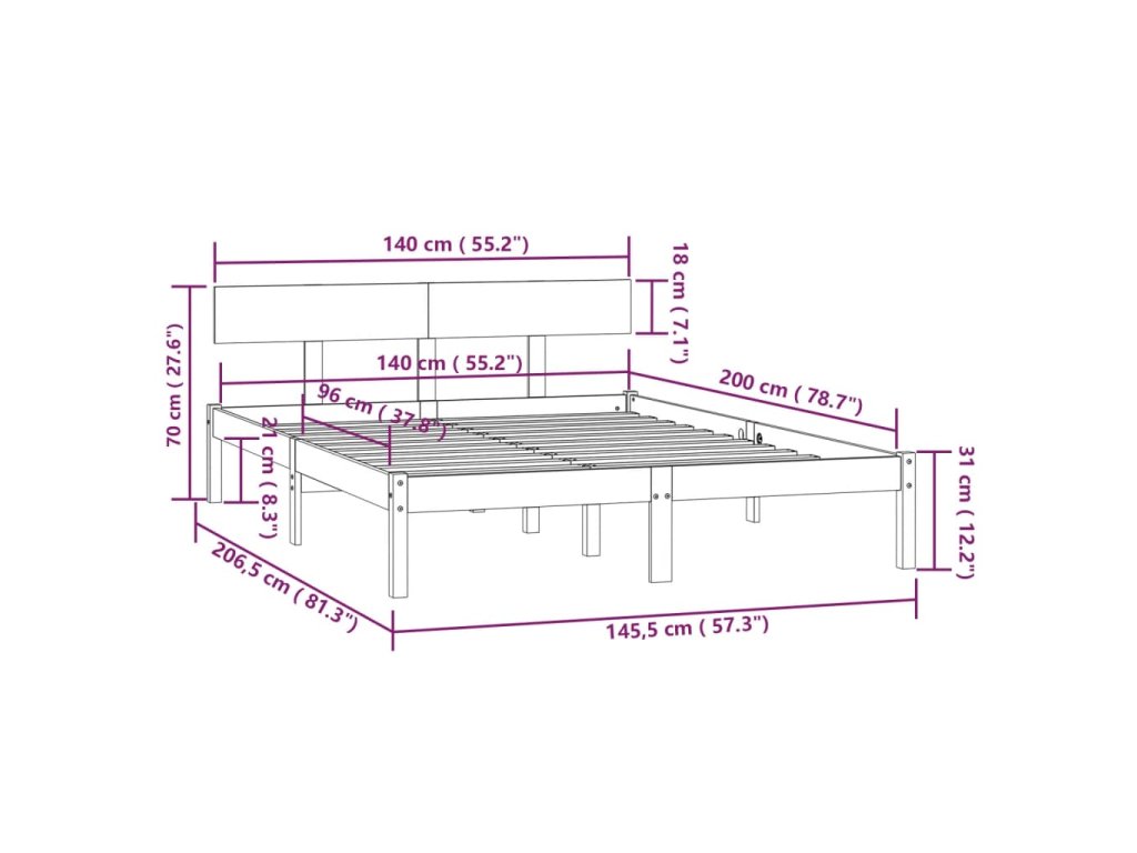Posteľný rám bez matraca, drevený masív 140x200 cm 810147
