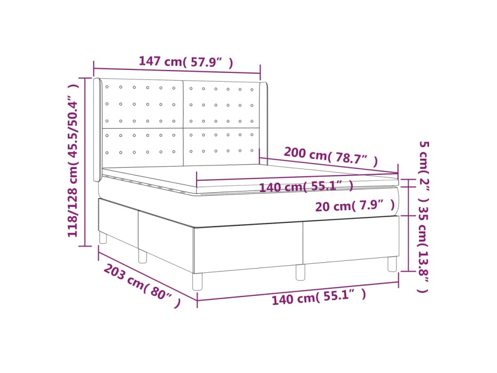 - Rozmery: 203 x 147 x 118/128 cm (D x Š x V)