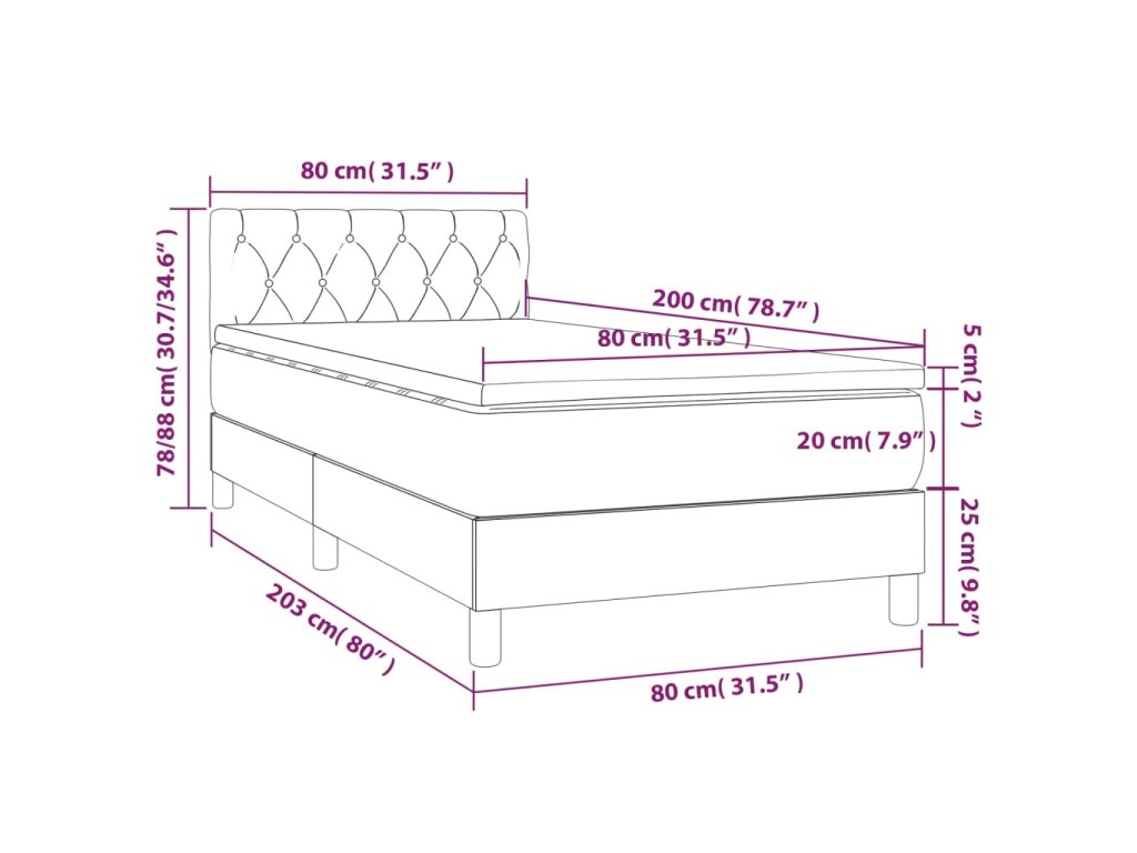Posteľný rám boxsping s matracom bledosivý 80x200 cm látka 3140809