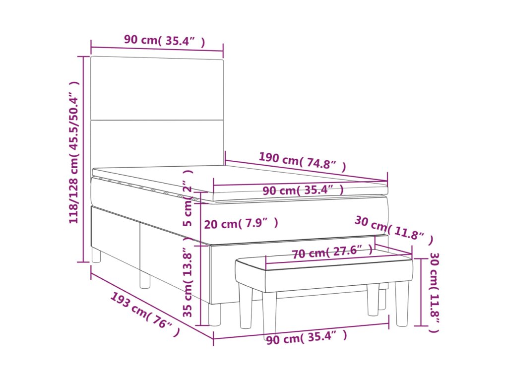 Posteľný rám boxspring s matracom modrý 90x190 cm látka 3136963