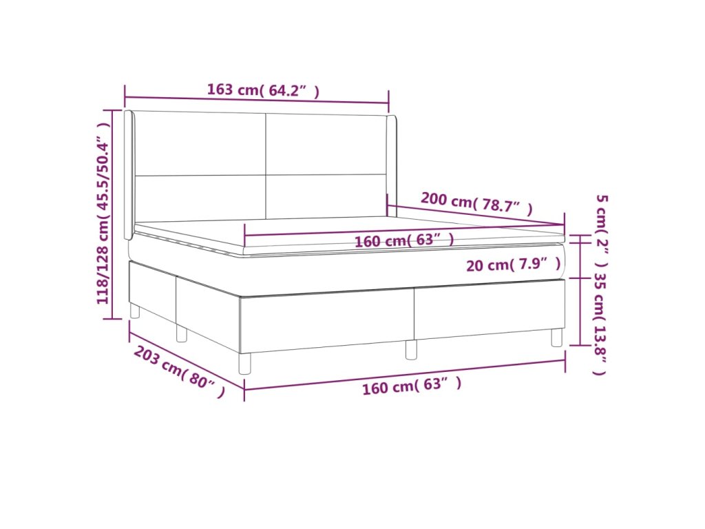Posteľný rám boxspring s matracom sivohned 160x200 cm látka 3131285