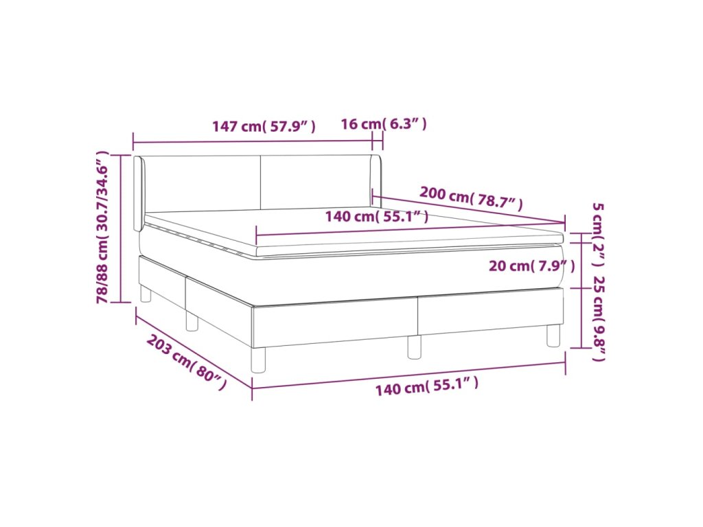 Posteľný rám boxspring s matracom tmavosivý 140x200 cm zamat 3130842