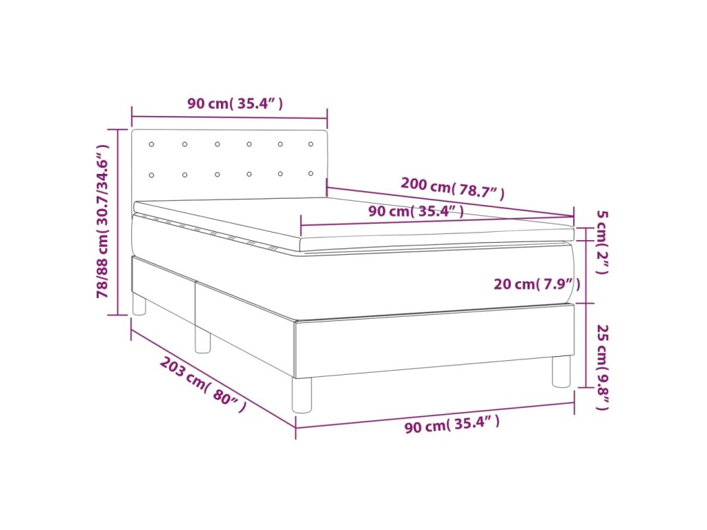 Posteľný rám boxspring s matracom tmavosivý 90x200 cm zamat 3141522