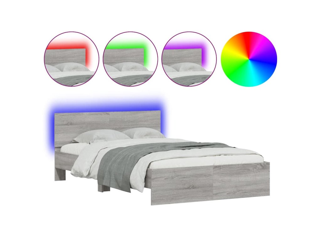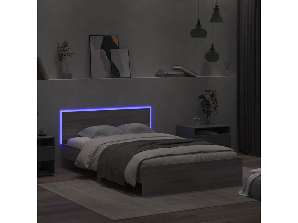 Posteľný rám s čelom a LED sivý sonoma 140x200 cm 3207614