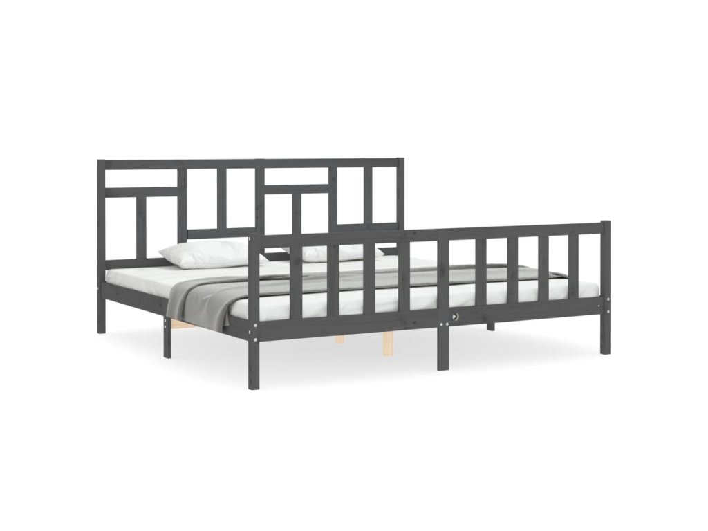 Posteľný rám s čelom sivý 200x200 cm masívne drevo 3193163