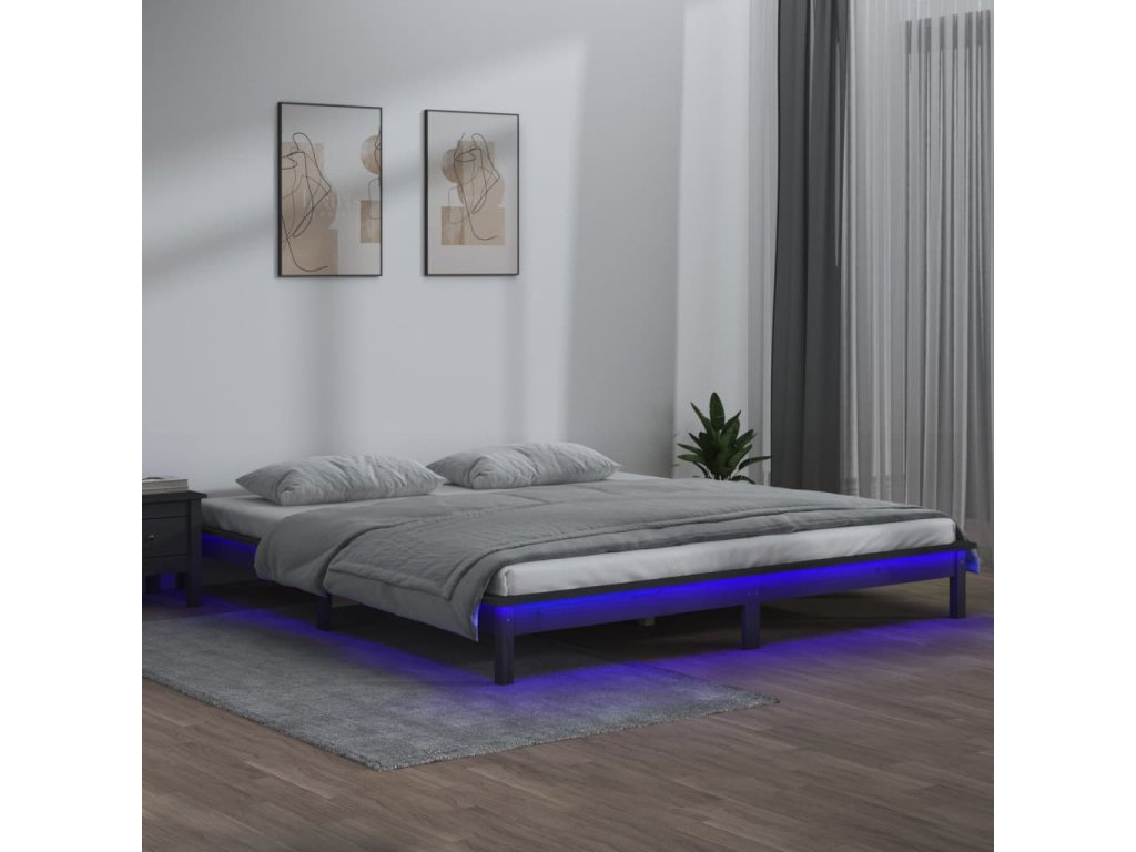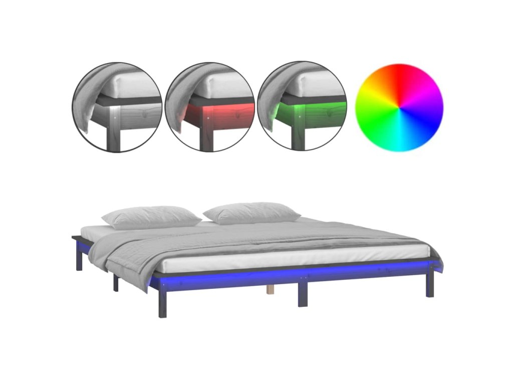 Posteľný rám s LED, sivý 140x190 cm, drevený masív 820653