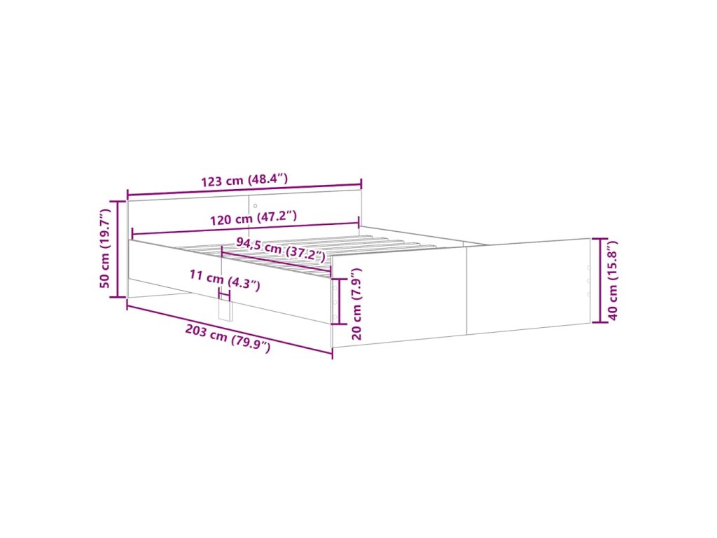 Posteľný rám s predným a zadným čelom, dub sonoma 120x200 cm 3203742
