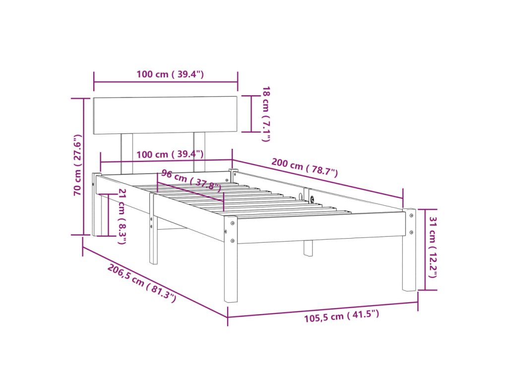 Rošt postele je vyrobený z masívneho borovicového dreva a je mimoriadne pevný a odolný. Pevné lamely ponúkajú potrebnú oporu a klasické čelo postele vám umožní pohodlne odpočívať pri čítaní alebo sledovaní filmu. Táto jednolôžková posteľ je vhodná pre matrac s rozmermi 100 x 200 cm. Na tejto posteli si môžete vychutnať skvelý spánok!