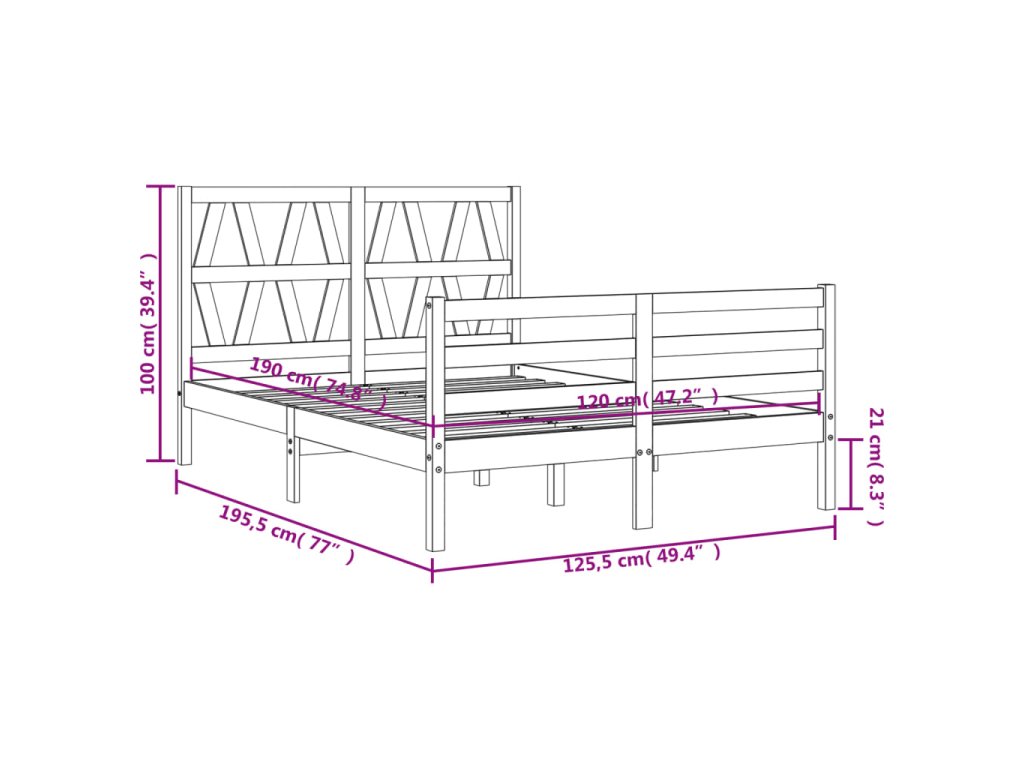 - Celkové rozmery postele: 195,5 x 125,5 x 100 cm (d x š x v)