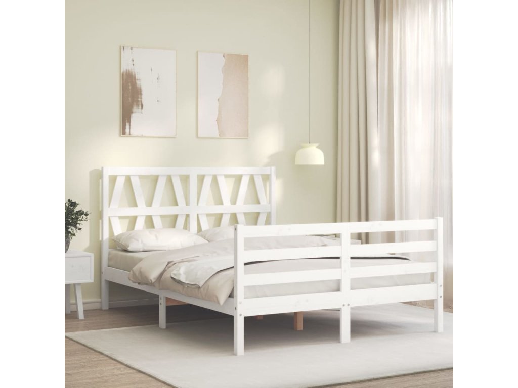 Rám postele s čelom biely malé dvojlôžko masívne drevo 3194347