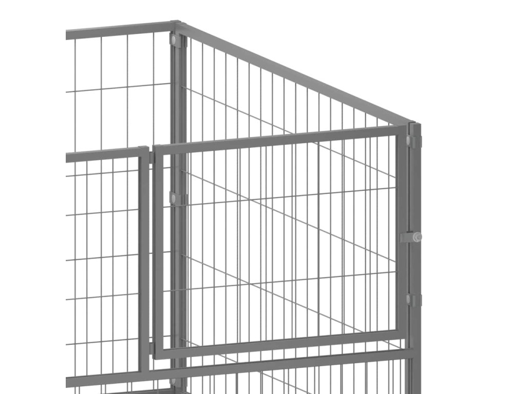 Veľká klietka pre psa poskytuje dostatok priestoru na cvičenie. Stena z oceľového pletiva pomáha predchádzať neočakávaným nehodám a zároveň umožňuje vetranie. Vďaka robustnej oceľovej konštrukcii je tento výbeh pre domáce zvieratá odolný a vyrobený tak, aby vydržal čo najdlhšie. Dvere majú navyše uzamykateľnú západku, ktorá zaisťuje dodatočnú bezpečnosť a ochranu vašich psov.