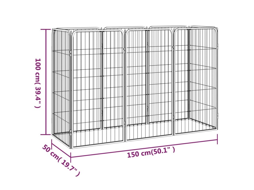 Ohrádka pre psov 8 panelov čierna 50x100 cm práškovaná oceľ 3115958