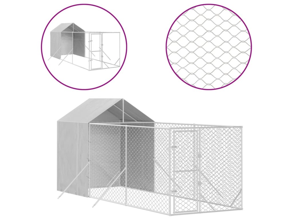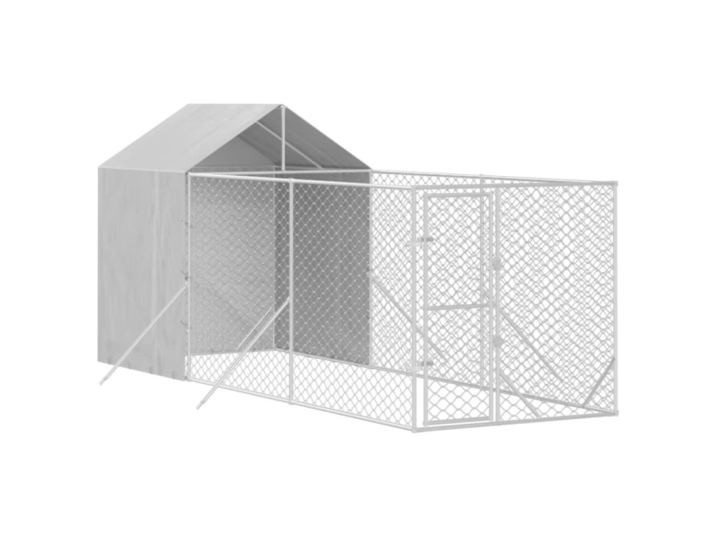 Vonkajší koterec pre psov so strechou strieborný 2x6x2,5 m oceľ 3190475