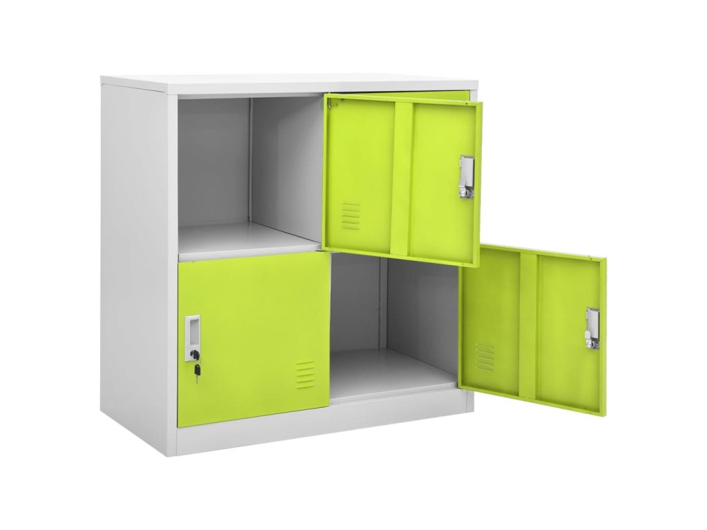Táto úložná skrinka je vyrobená z ocele, vďaka čomu je odolná a ľahko sa čistí. Táto skladovacia skriňa má zámky a dostatok úložného priestoru pre rôzne predmety, ako sú topánky, tašky, knihy, spisy a podobne. Táto skrinka je vhodná do škôl a kancelárií na uloženie rôznych vecí.