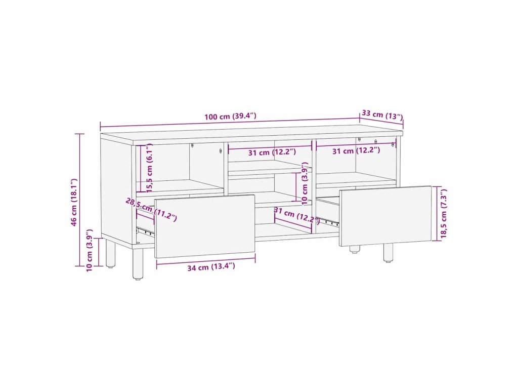 TV jednotky so zásuvkou Pevné akáciové drevo 100 x 33,5 x 46 cm 4017774