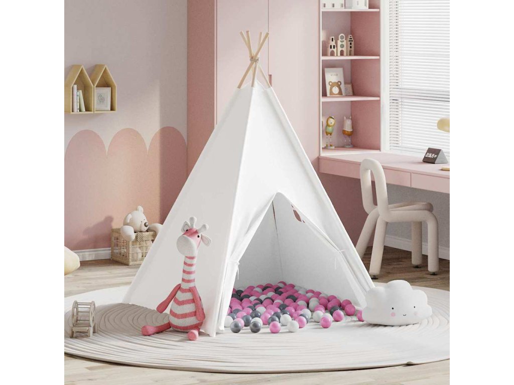 Tento teepee stan je super hrací priestor pre deti, ktorý sa dá použiť vo vnútri aj vonku. Jeho jednoduchý, ale štýlový dizajn zapadne do každej izby, a pyramídová forma mu dodáva stabilitu. Je to miesto, kde sa môžu deti zabávať rozprávaním príbehov alebo jednoducho si užívať svoj kútik. Perfektne sa hodí na záhradné akcie a dobrodružstvá na dvore, pretože spája hru s praktickosťou.