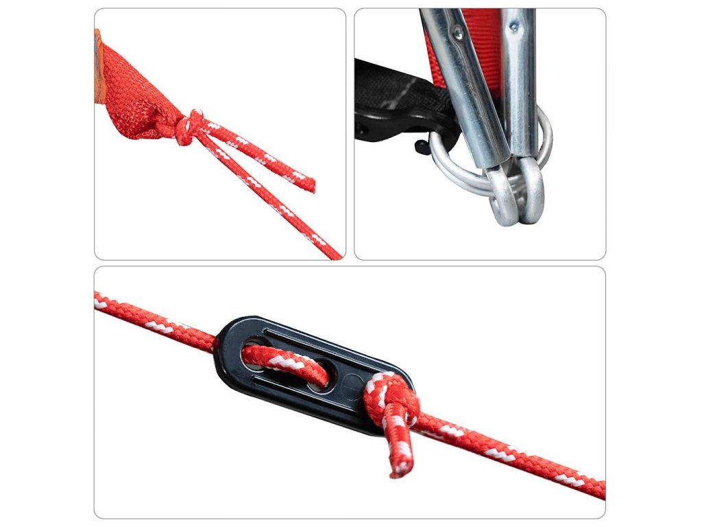 - Jednoduché nastavenie a demontáž: Vďaka veľmi flexibilným a ľahkým tyčiam zo sklenených vlákien a pohodlnému systému spojenia kolíkom a krúžkom je postavenie a zloženie stanu hračkou.