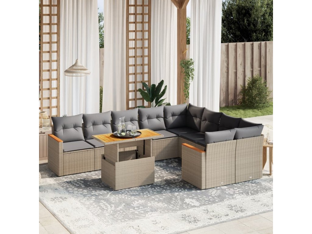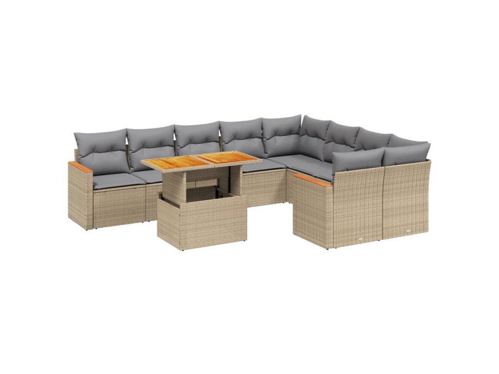 10-dielna záhradná sedacia súprava a vankúše béžová polyratan 3273236