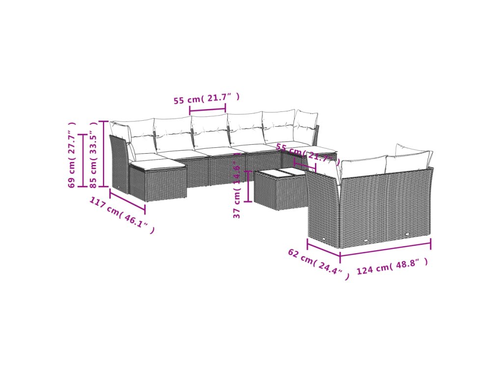 10-dielna záhradná sedacia súprava a vankúše hnedá polyratan 3218323