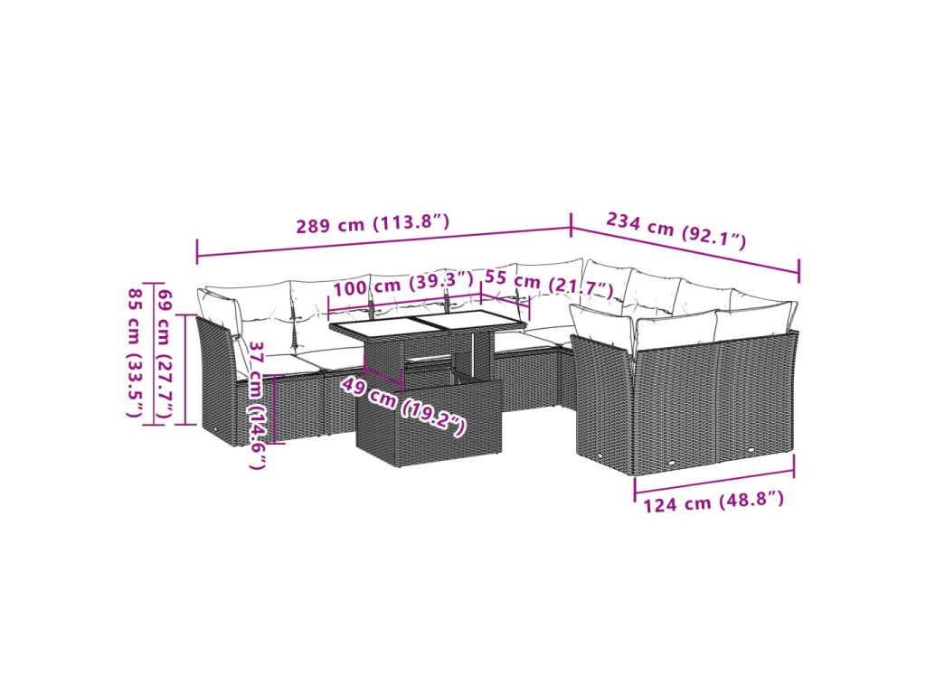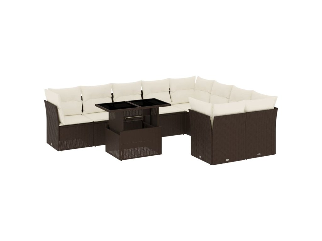 10-dielna záhradná sedacia súprava a vankúše hnedá polyratan 3266843