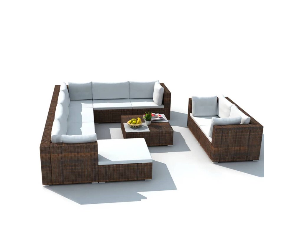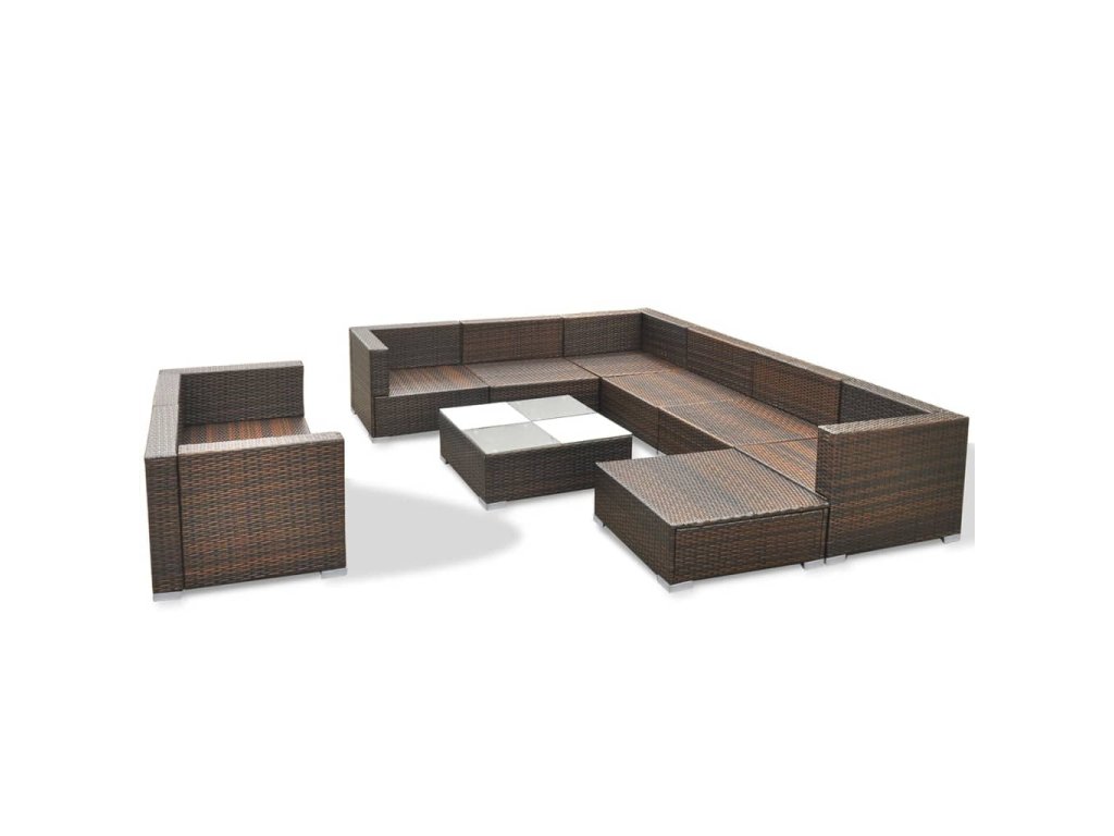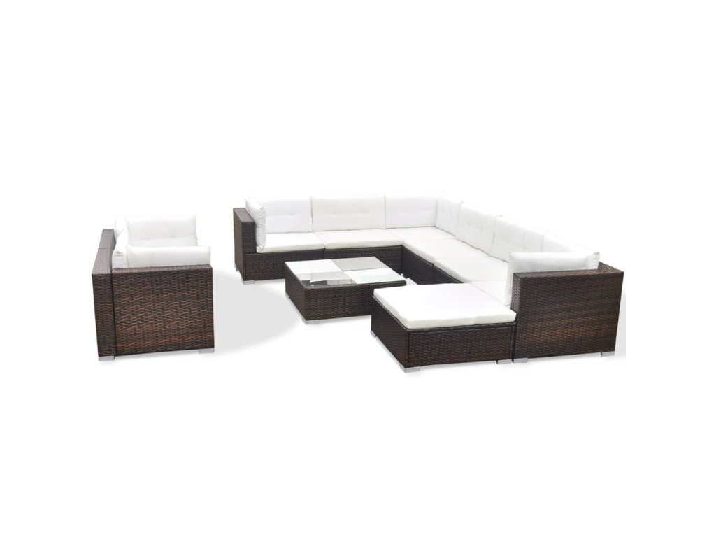 10-dielna záhradná sedacia súprava s vankúšmi hnedá polyratanová 41875