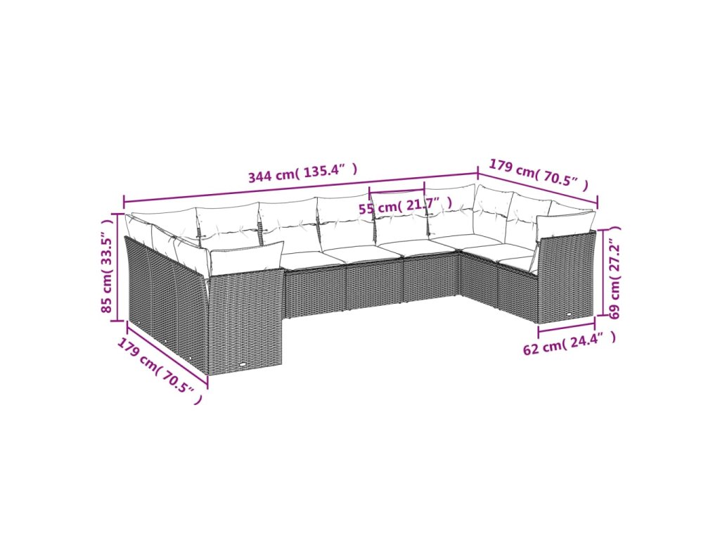 10-dielna záhradná sedacia súprava s vankúšmi polyratan čierna 3218195