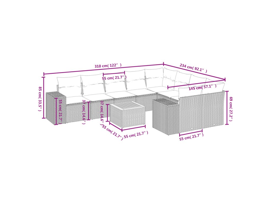 - Modulárny dizajn: Táto súprava vonkajšieho nábytku má modulárny dizajn, vďaka čomu je úplne flexibilná a ľahko sa premiestňuje, takže si môžete vytvoriť prispôsobené usporiadanie vonkajšieho nábytku.