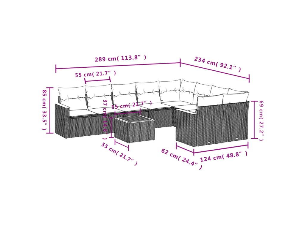 10-dielna záhradná sedacia súprava s vankúšmi polyratan čierna 3258709