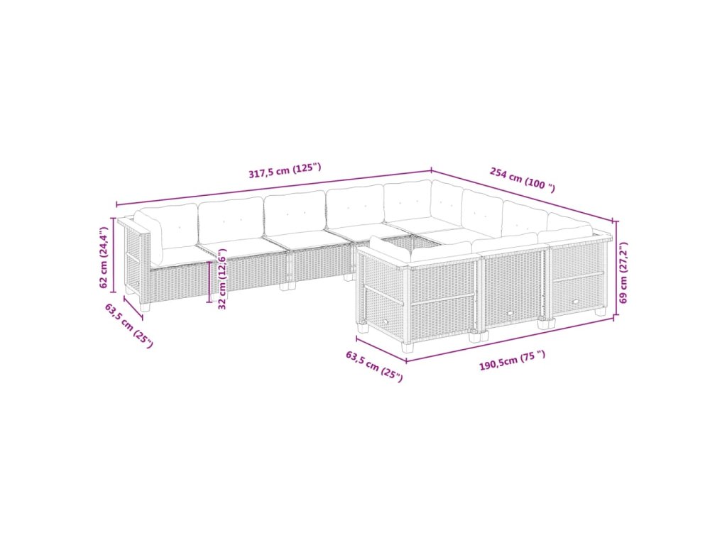 10-dielna záhradná sedacia súprava s vankúšmi polyratan čierna 3262031