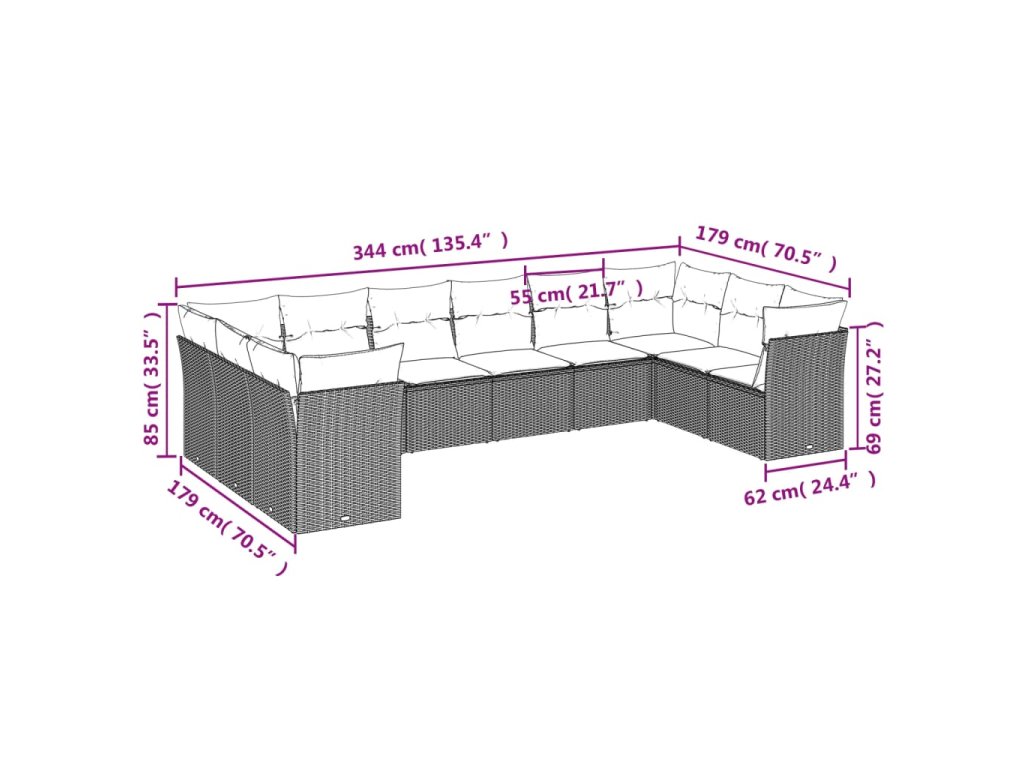 10-dielna záhradná sedacia súprava s vankúšmi polyratanová sivá 3250041