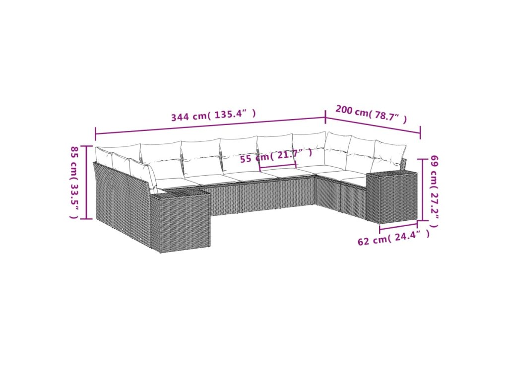10-dielna záhradná sedacia súprava s vankúšmi polyratanová sivá 3255409
