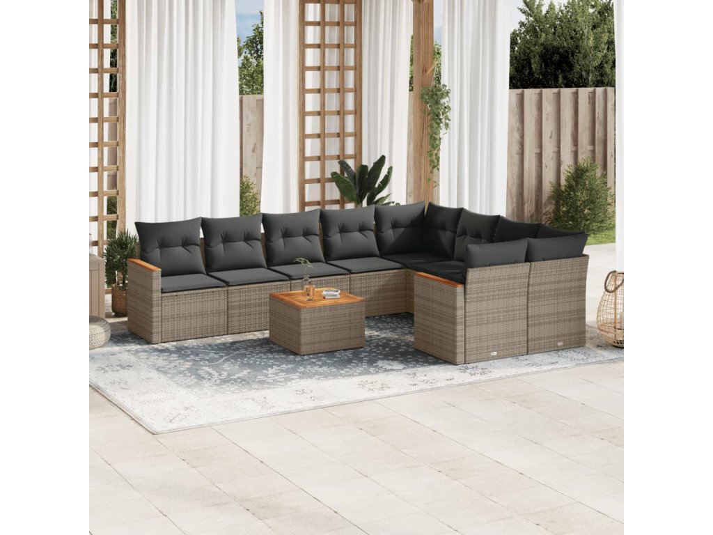 10-dielna záhradná sedacia súprava s vankúšmi polyratanová sivá 3258714