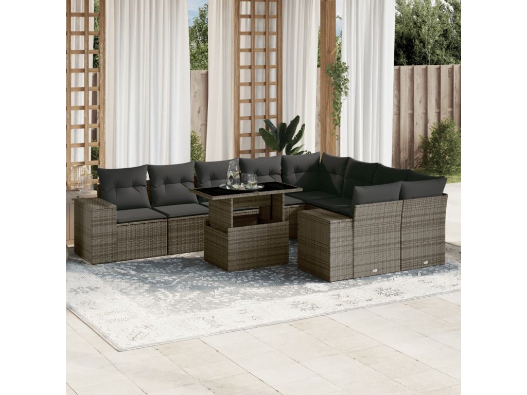 10-dielna záhradná sedacia súprava s vankúšmi polyratanová sivá 3269390
