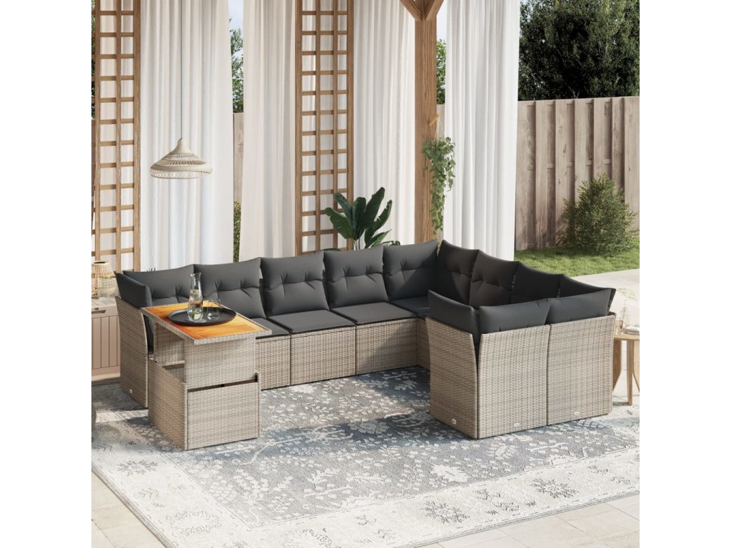 10-dielna záhradná sedacia súprava s vankúšmi polyratanová sivá 3271018
