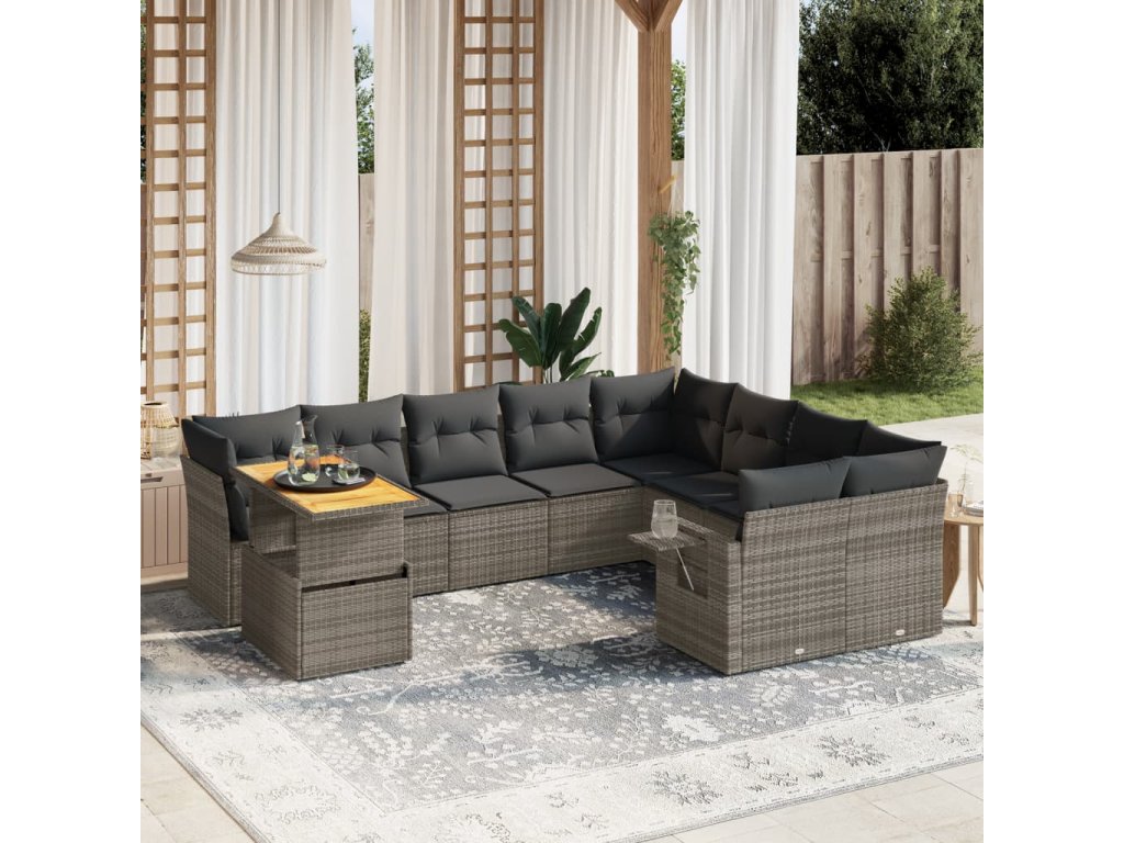 10-dielna záhradná sedacia súprava s vankúšmi polyratanová sivá 3271921
