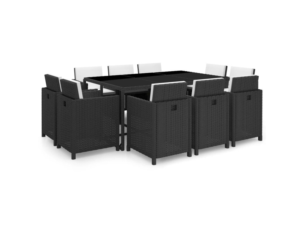 11-dielna vonkajšia jedálenská súprava s vankúšmi polyratan čierna 42547