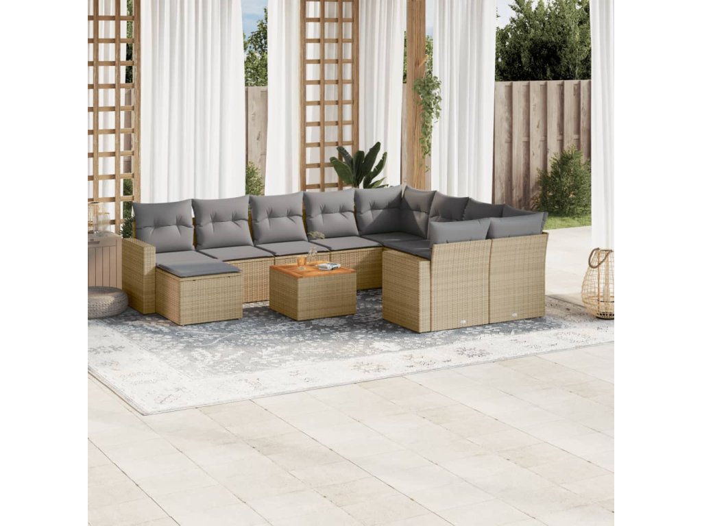 11-dielna záhrad. jedálenská sada vankúše mix béžovej polyratan 3256745