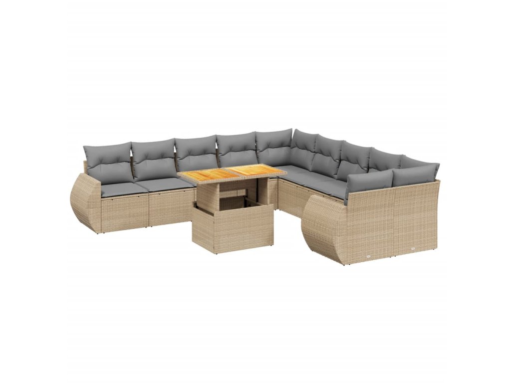 11-dielna záhradná jedálenská súprava vankúše béžová polyratan 3272389