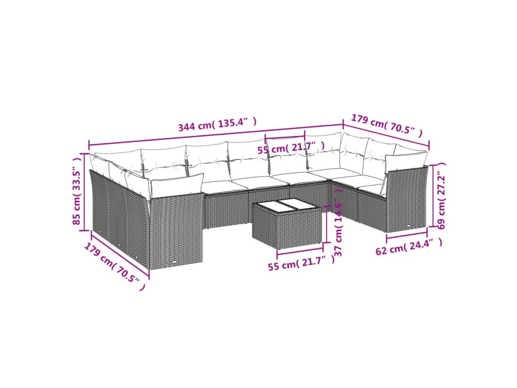 11-dielna záhradná sedacia súprava a vankúše hnedá polyratan 3218213