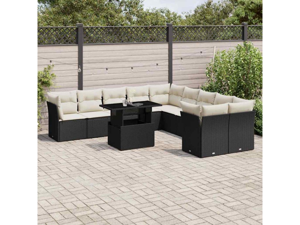 11-dielna záhradná sedacia súprava vankúše polyratan čierna 3266876