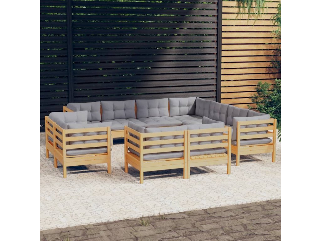 11-dielna záhradná súprava so sivými vankúšmi borovicový masív 3096934