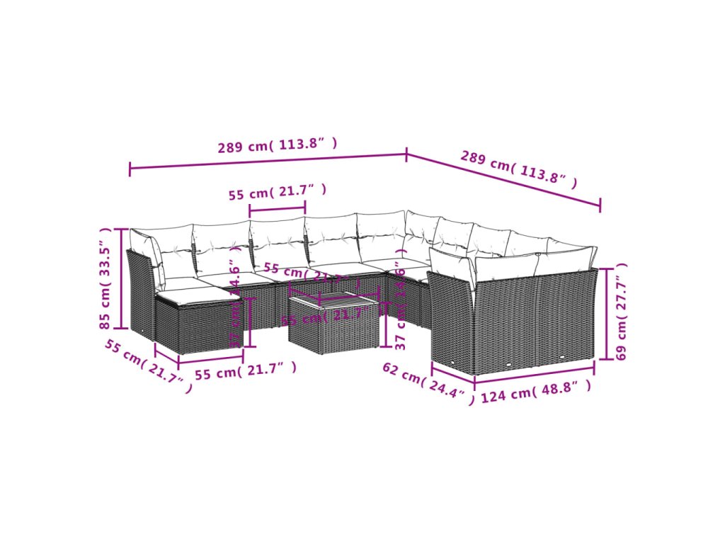 12-dielna záhradná sedacia súprava a vankúše béžová polyratan 3223979