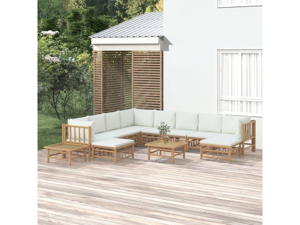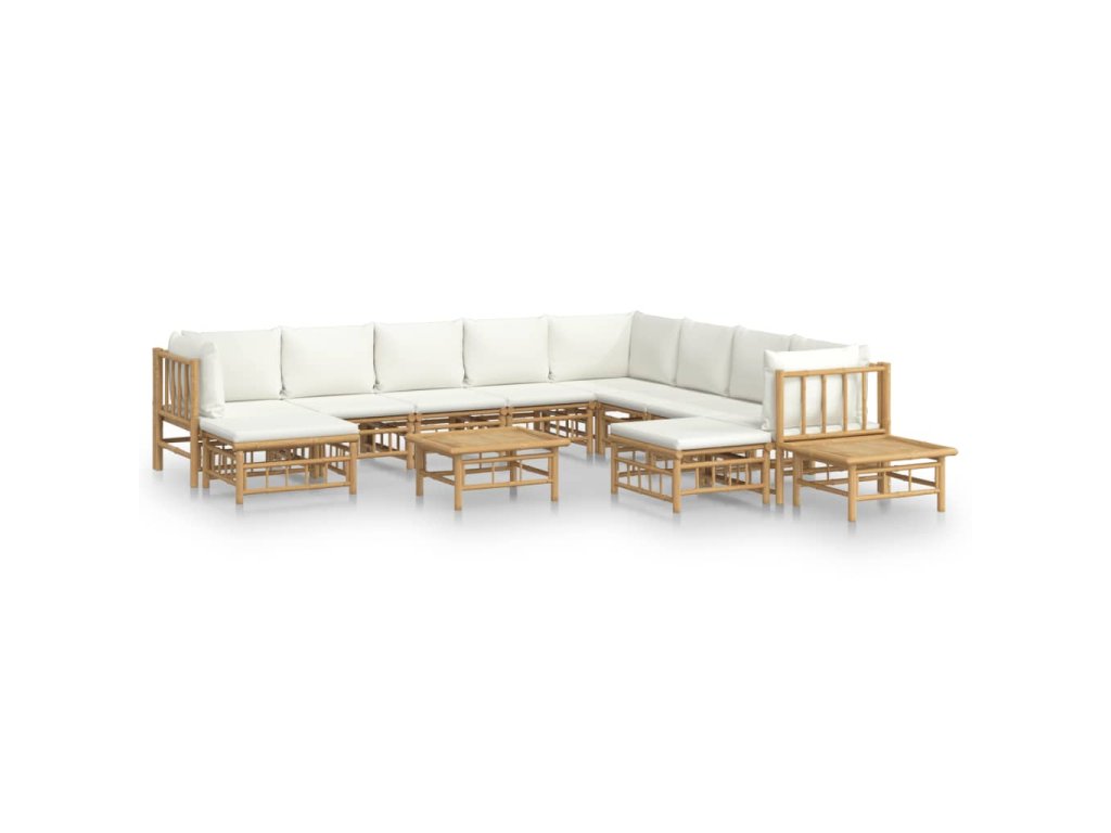 12-dielna záhradná sedacia súprava krémovobiele vankúše bambus 3155195