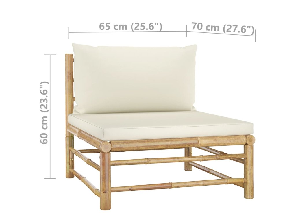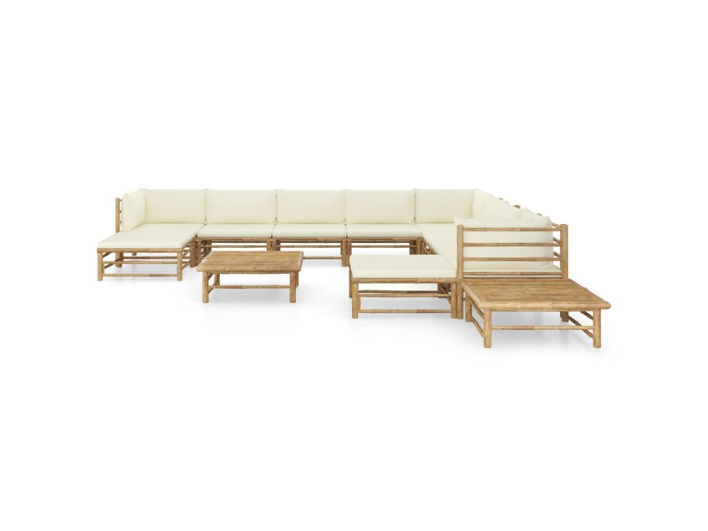 12-dielna záhradná sedacia súprava s krémovo-bielymi podložkami bambus 3058227
