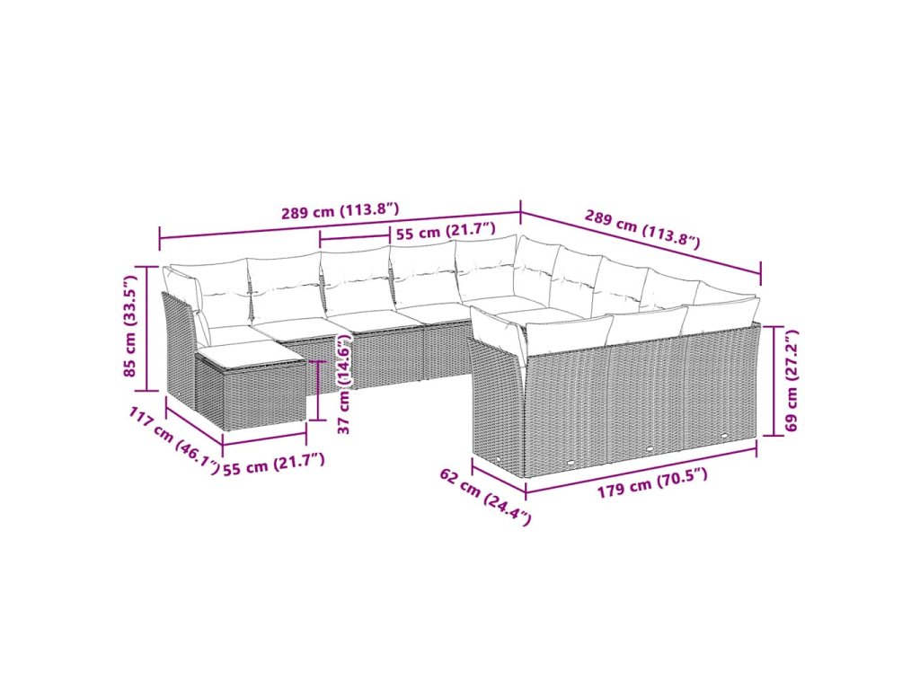 12-dielna záhradná súprava pohoviek s vankúšmi polyratan 3218632