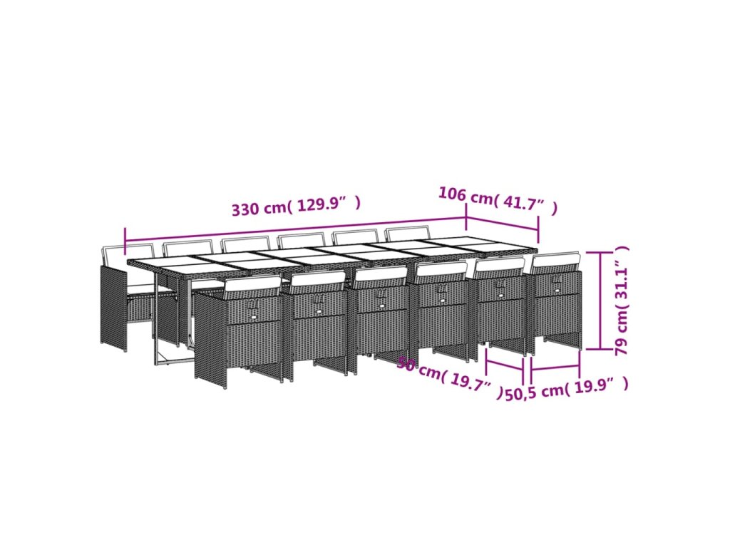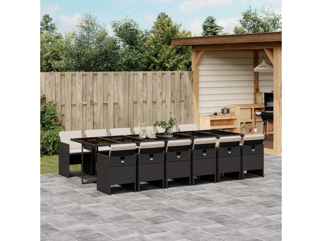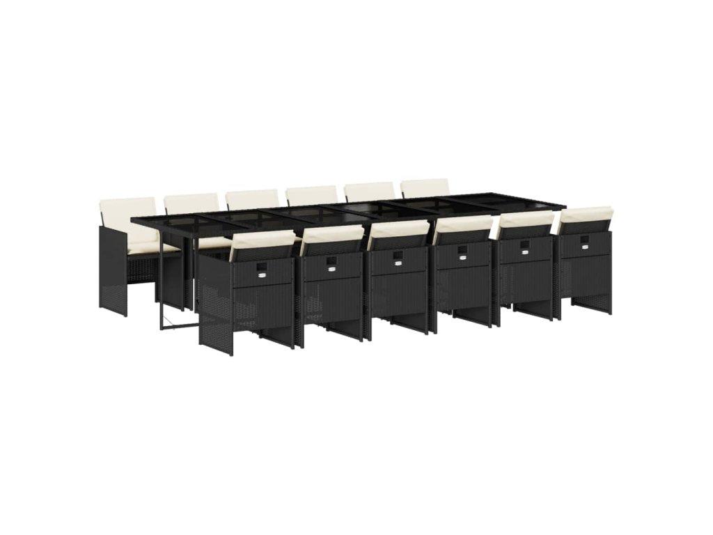 13-dielna záhr. jedálenská súprava s vankúšmi čierna polyratan 3210582
