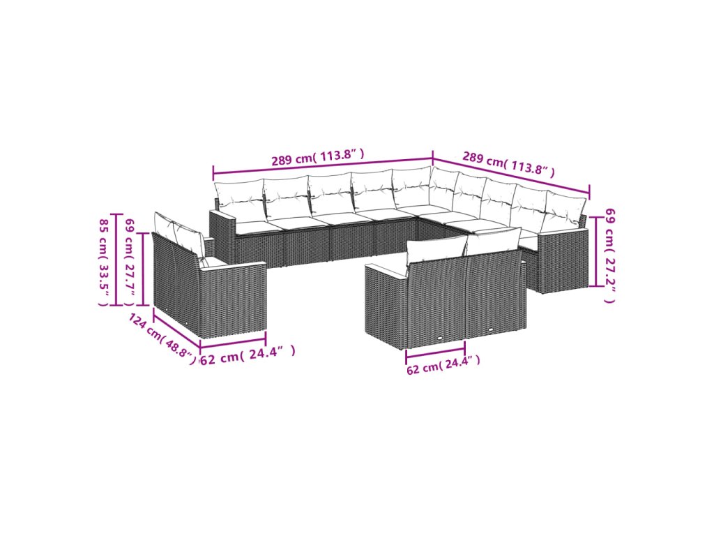 13-dielna záhr. jedálenská súprava s vankúšmi čierna polyratan 3226525