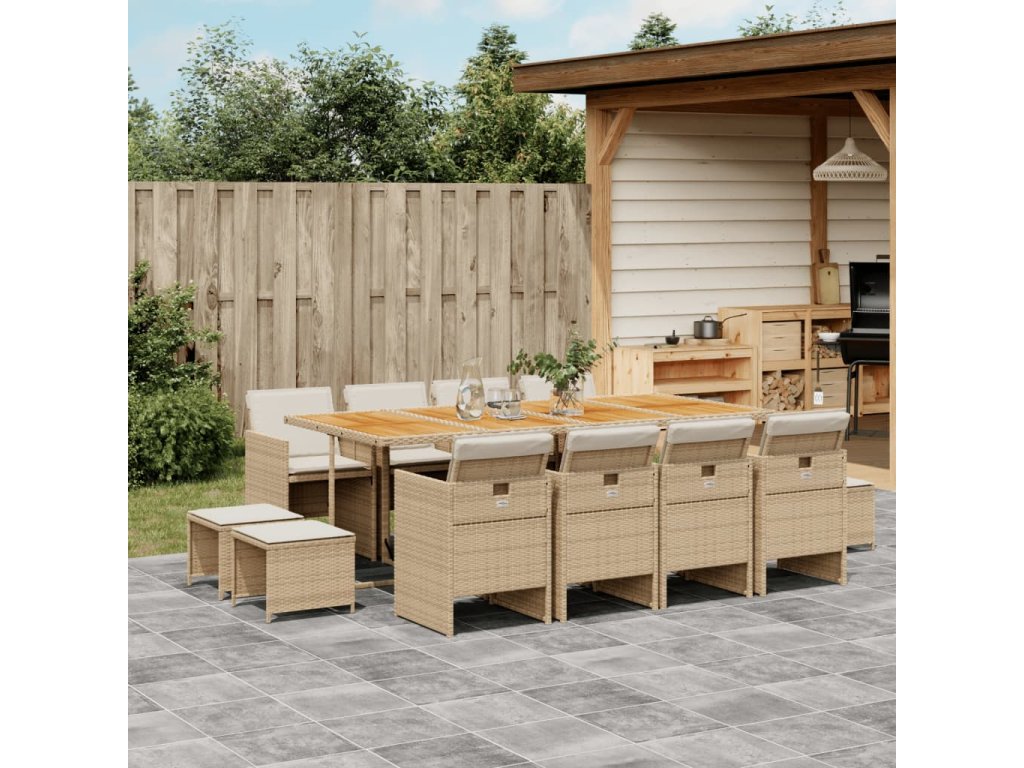 13-dielna záhrad. jedálenská sada vankúše béžová polyratan 3277755