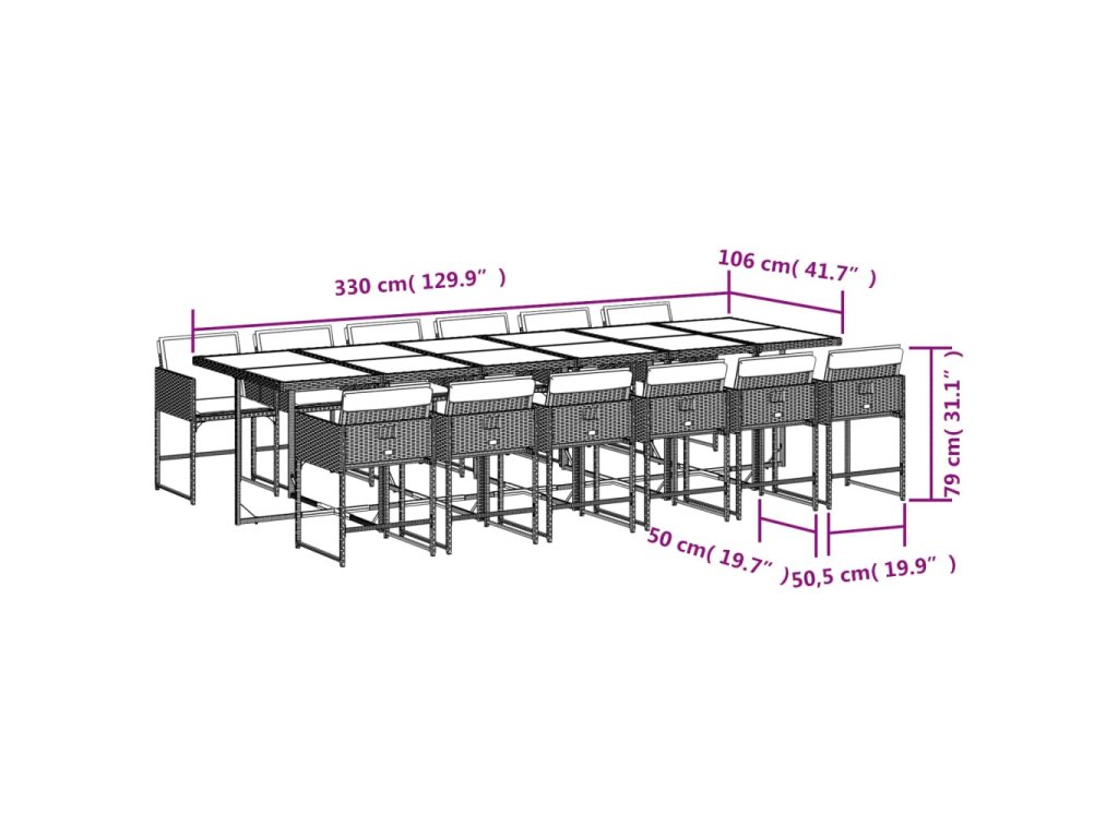 13-dielna záhrad. jedálenská súprava s vankúšmi sivá polyratan 3278071