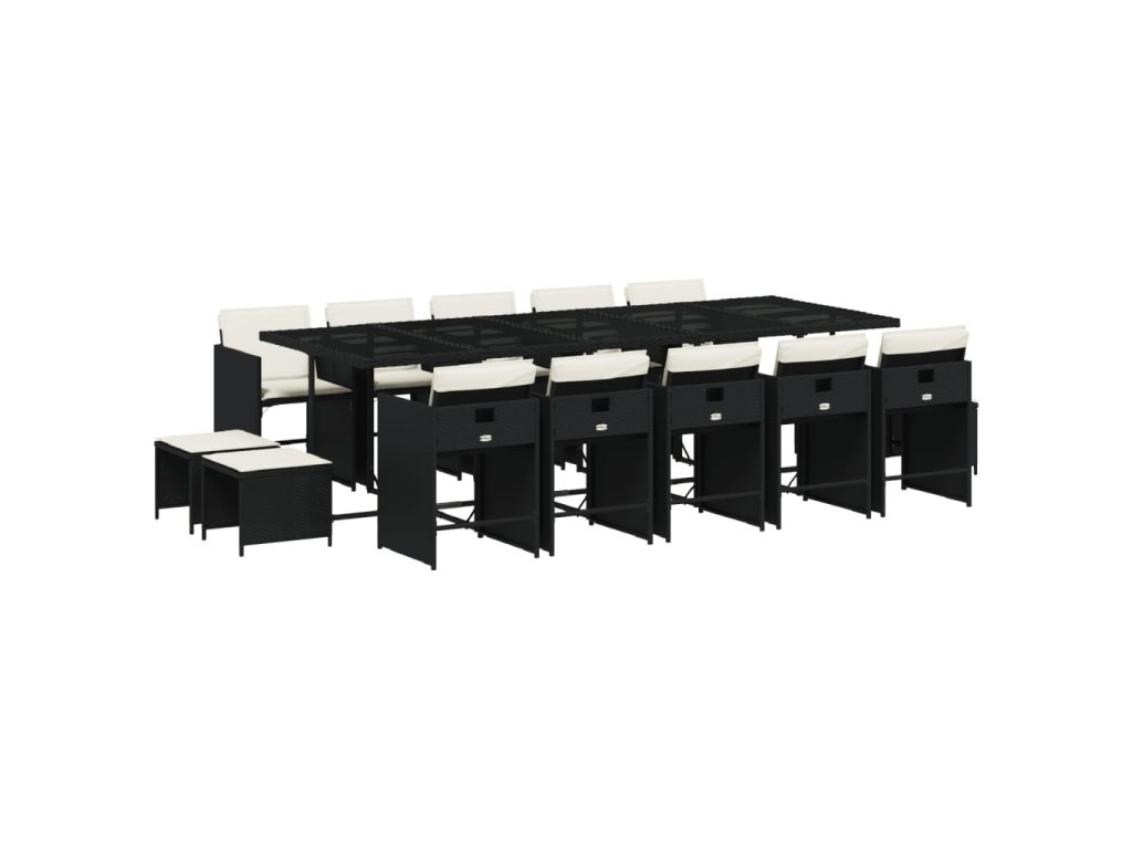 15-dielna záhr. jedálenská súprava s vankúšmi čierna polyratan 3277937